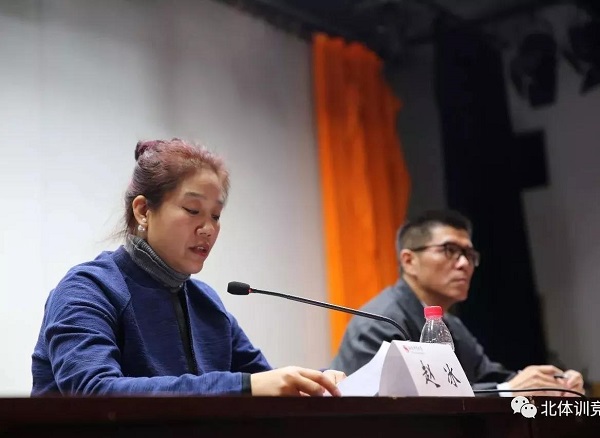 优秀教练员、运动员和裁判员代表先后上台发言。教练员代表车新港、运动员代表郭耘菲和孔繁辉、裁判员代表李娜从各自不同的角度与大家交流了自身训练竞赛的经历和体会。