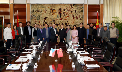 2018年1月4日,捷克教育代表团一行10人在捷克新丝绸之路商会北京办公室的协调下到访我校,代表团外宾成员主要来自捷克帕拉斯特(PALESTRA)私立体育大学和西波西米亚大学。我校党委书记曹卫东会见了代表团,并向来访代表团简要介绍了365bet投注网的基本情况,表达了学校对于与捷克高校国际合作的大力支持。捷克帕拉斯特PALESTRA私立体育大学校长和西波西米亚大学代表也分别介绍了该校的基本情况、优势资源和合作意向。双方就在学生交流、师生交流、科研合作、文化互鉴、文化推广、联合培养等各方面的合作进行了深入讨论。陪同参加会见的还有艺术学院院长马鸿韬、竞技体育学院院长马冰、教育学院院长王华倬、武术学院院长马学智、管理学院副院长林显鹏、教务处副处长章潮晖、科技处副处长朱晓兰、体育工程学院曹润、国际交流与合作处副处长花勇民及翻译吴俊老师。